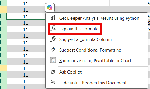 select the cell and from Copilot icon by the cell choose Explain this formula. Copilot will then generate an explaination of how the formula works.